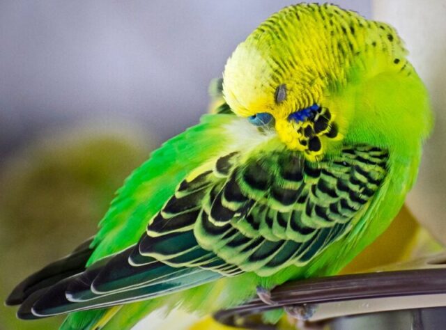 • Его глаза закрыты! Если глаза вашего попугая закрыты, скорее всего, он отдыхает. Однако закрытые глаза — не единственный признак того, что ваш питомец спит. Иногда волнистые попугаи закрывают глаза, когда им удобно!
